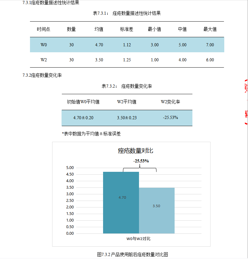 從痤瘡數量、失水率、皮膚顏色(淡?。?/span>三個維度來對比,