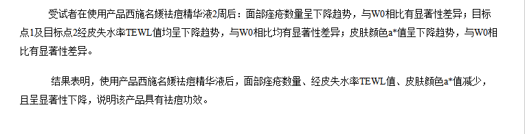 證實產品確有祛痘功效,且測試者中無人出現不良反應。